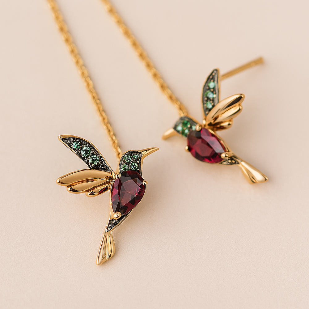 Colorful Hummingbird Earrings – Enamel & Zirconia Shine