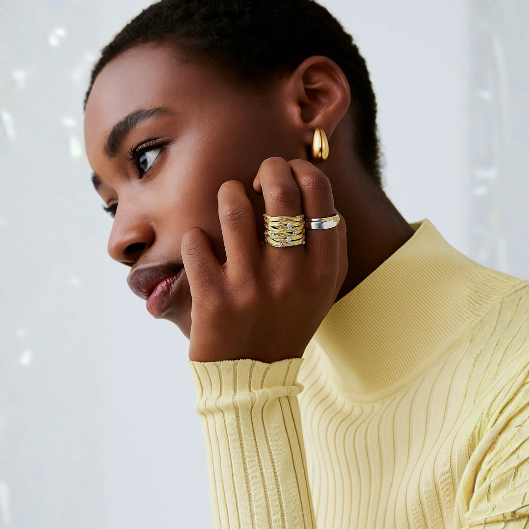 Minimalist Dual-Tone Silver & Gold Thread Ring