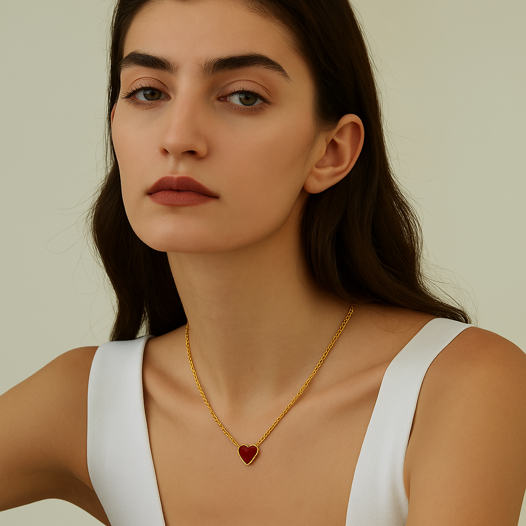 Delicate Gold Necklace with Red Heart Charm – Minimalist Everyday Accessory