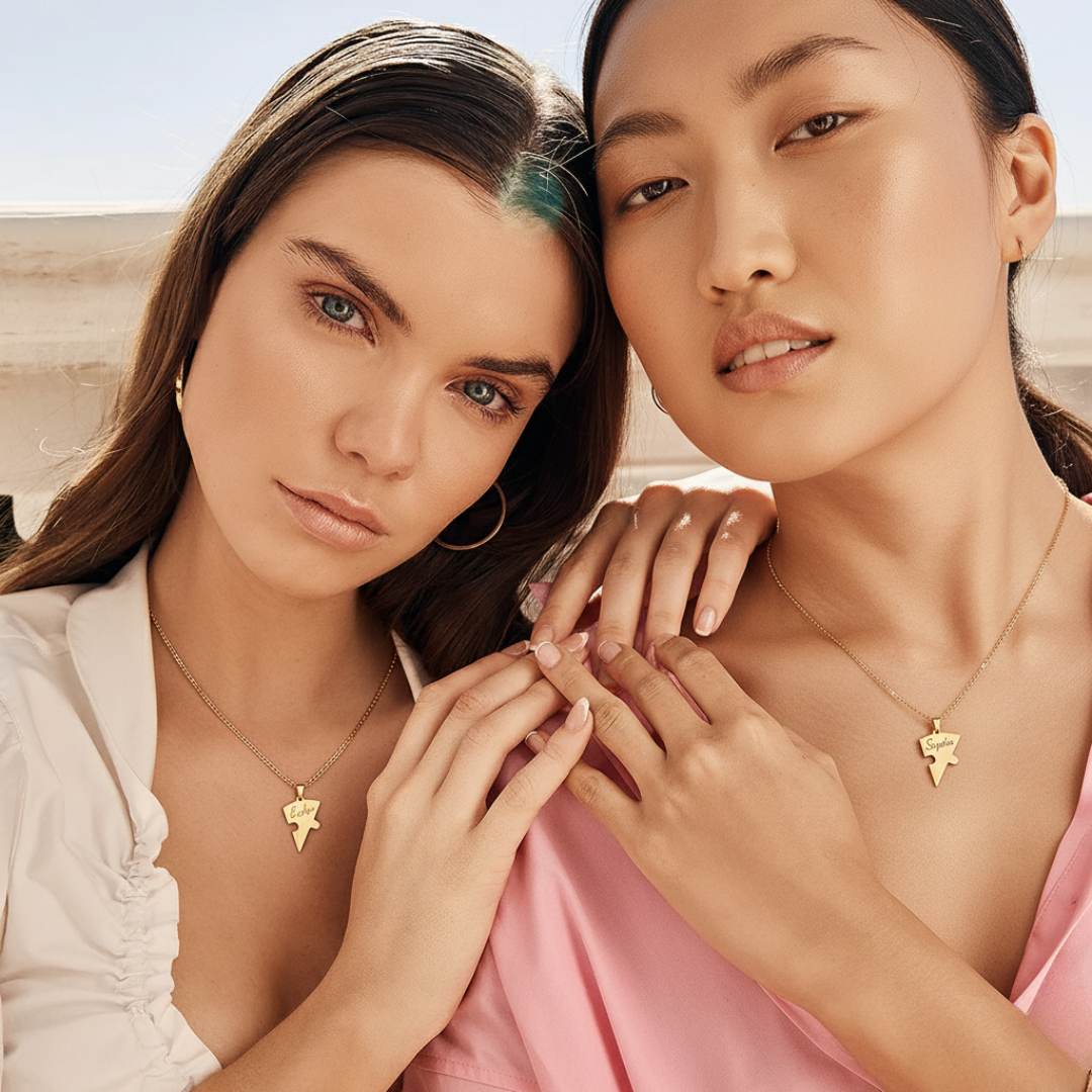 Puzzle Pieces: 2–8 engraved layers (combined into one single necklace)