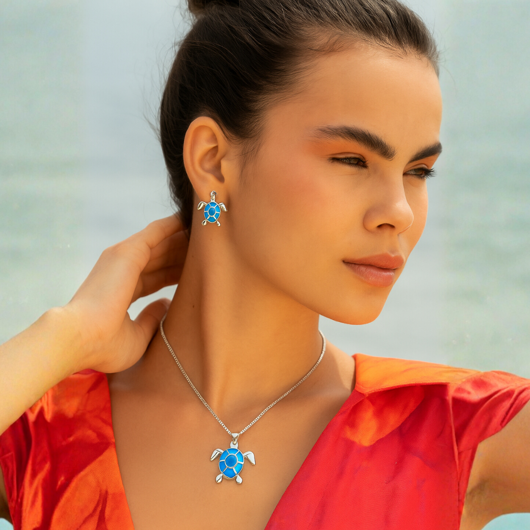 Elegant Vintage-Style Jewelry Set with Turquoise – Statement Earrings and Matching Necklace