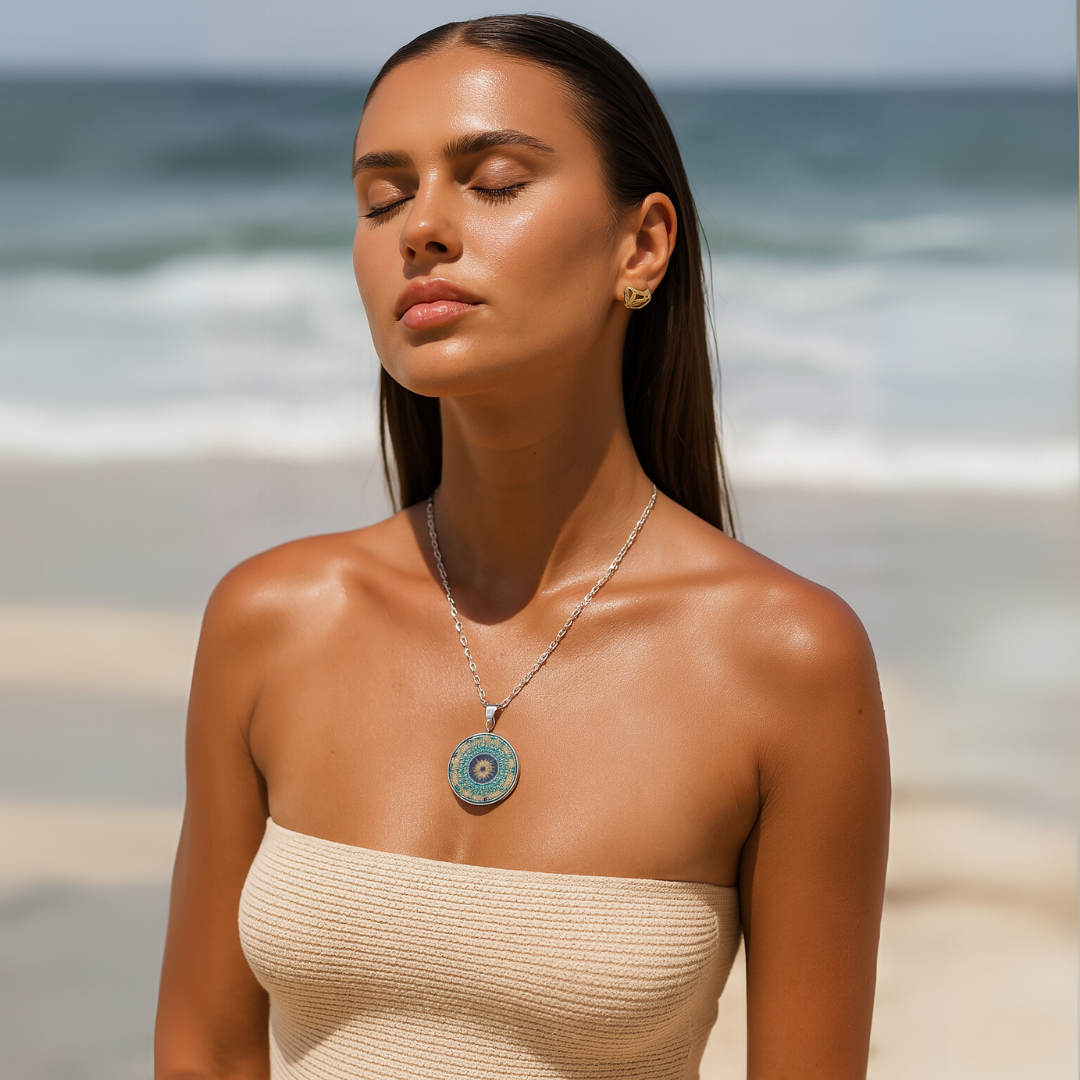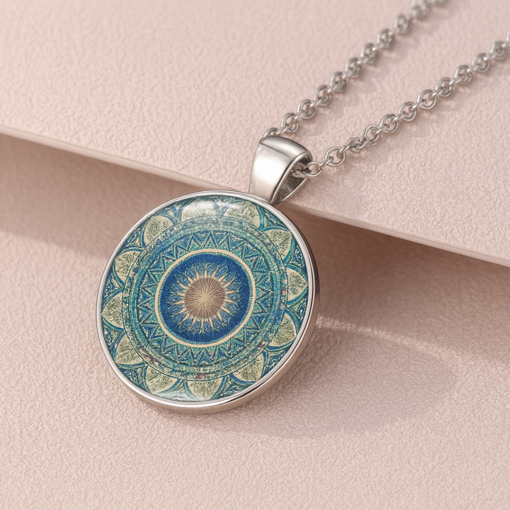 Boho Vintage Mandala Pendant Necklace – Blue Round Charm for Women