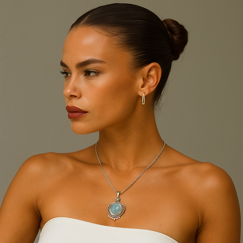 Elegant Silver-Colored Vintage Necklace with Round Pendant – Timeless and Versatile Jewelry for Women
