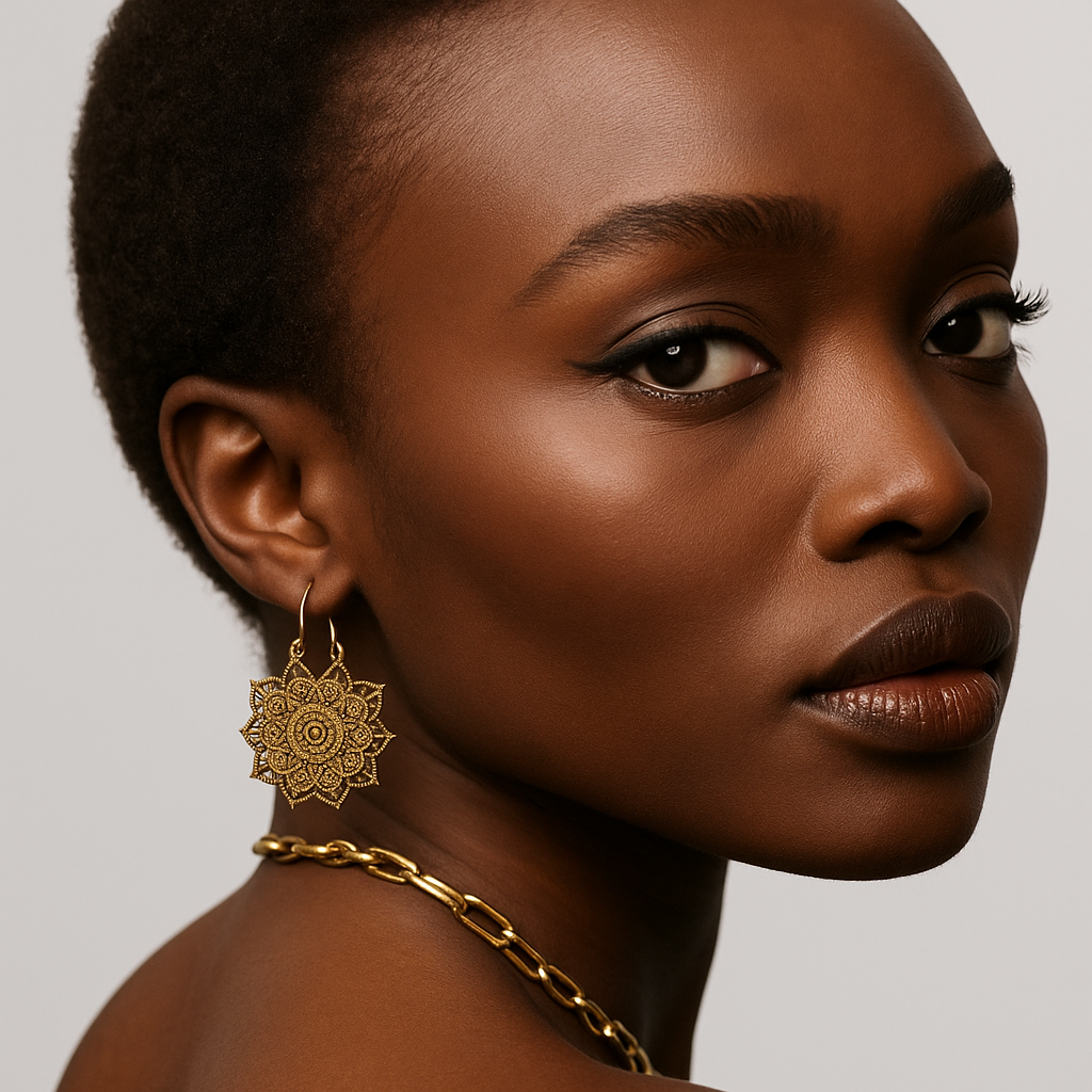 Add a touch of understated elegance to your look with these finely crafted drop earrings. Designed with intricate mandala-inspired detailing, they bring a delicate charm and refined balance to any outfit. Perfect for both everyday wear and special occasions, they elevate your style with subtle beauty.